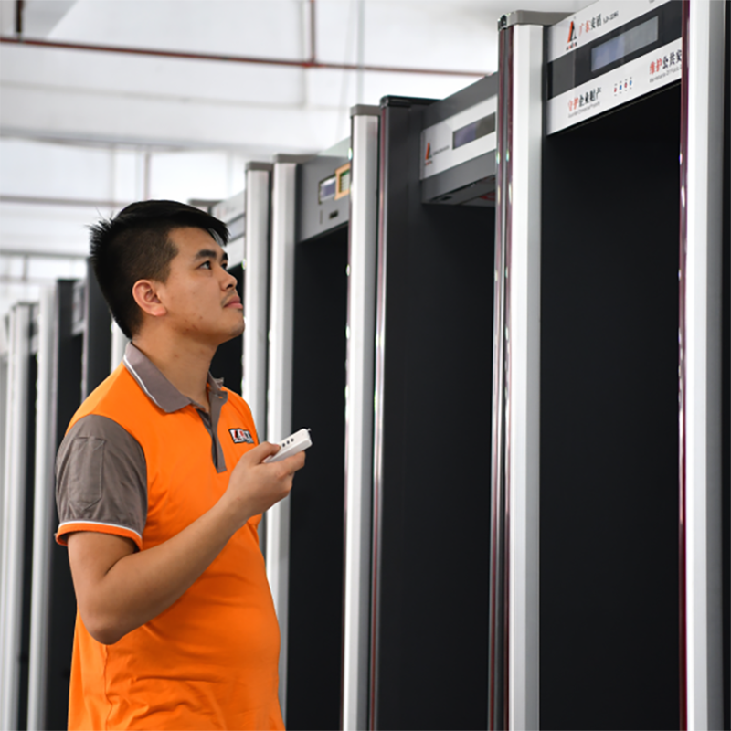 10、声光同时报警:当发现可疑物体时,安检门会发出报警声,同时面板部位可以看到报警区位。